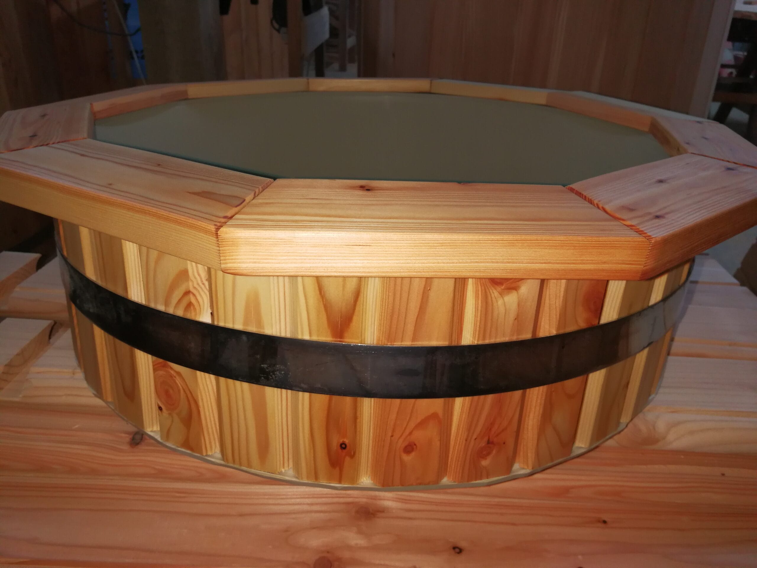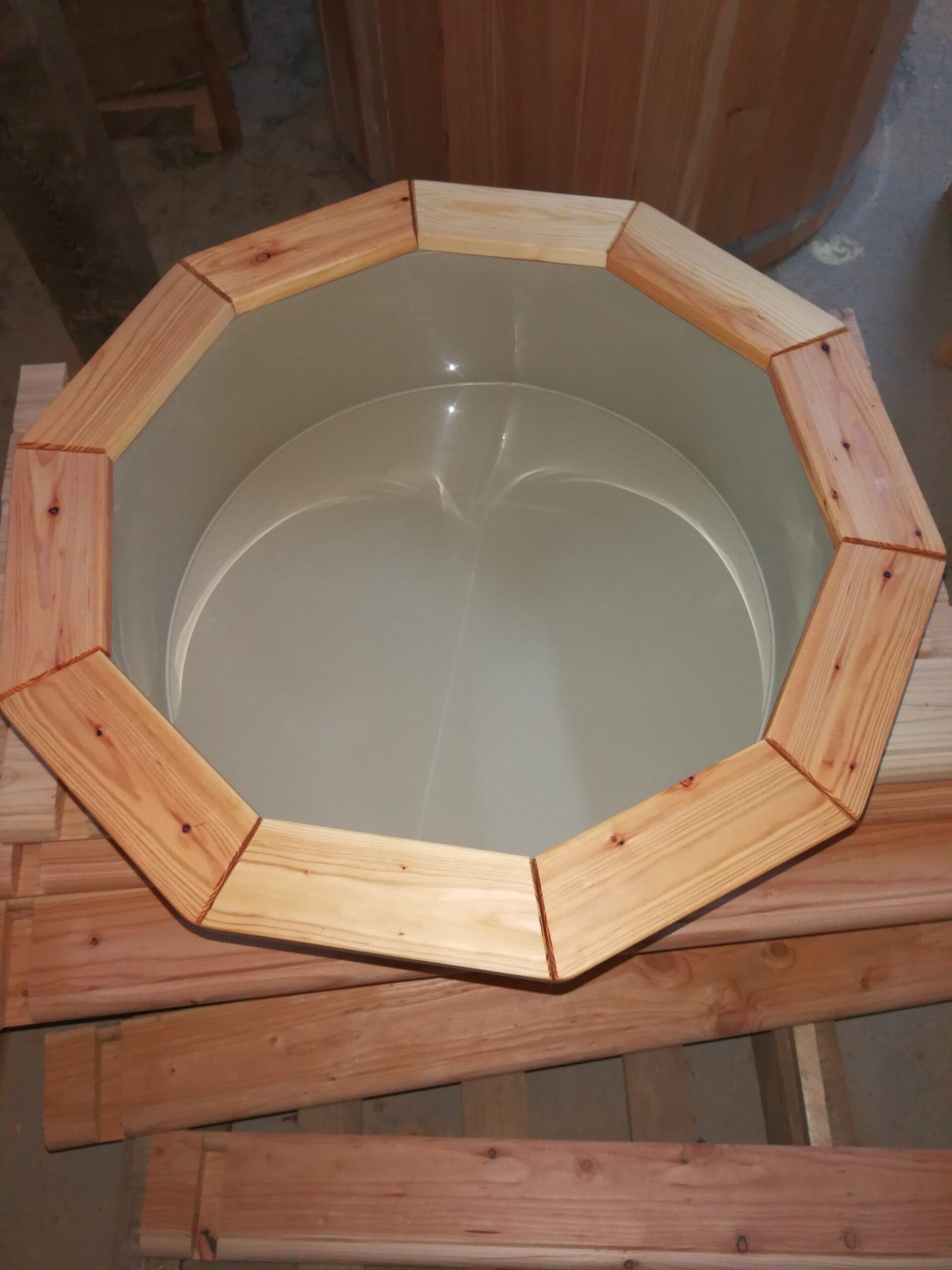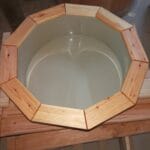 Balia kąpielowa, czyli tzw. „Gorąca Beczka”, wykonana jest z materiału: modrzew/świerk.