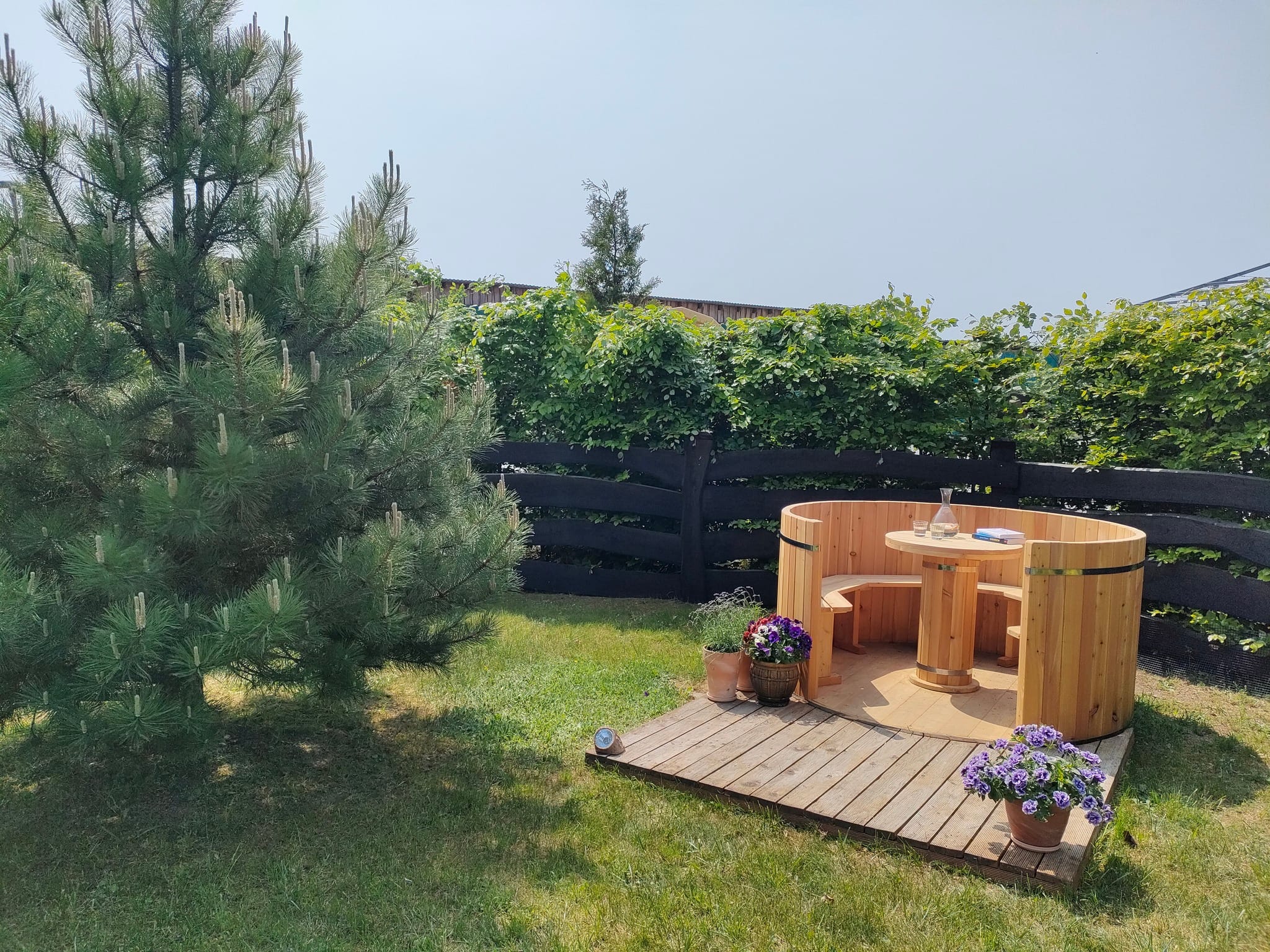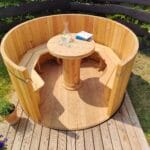 Balia kąpielowa, czyli tzw. „Gorąca Beczka”, wykonana jest z materiału: modrzew/świerk.